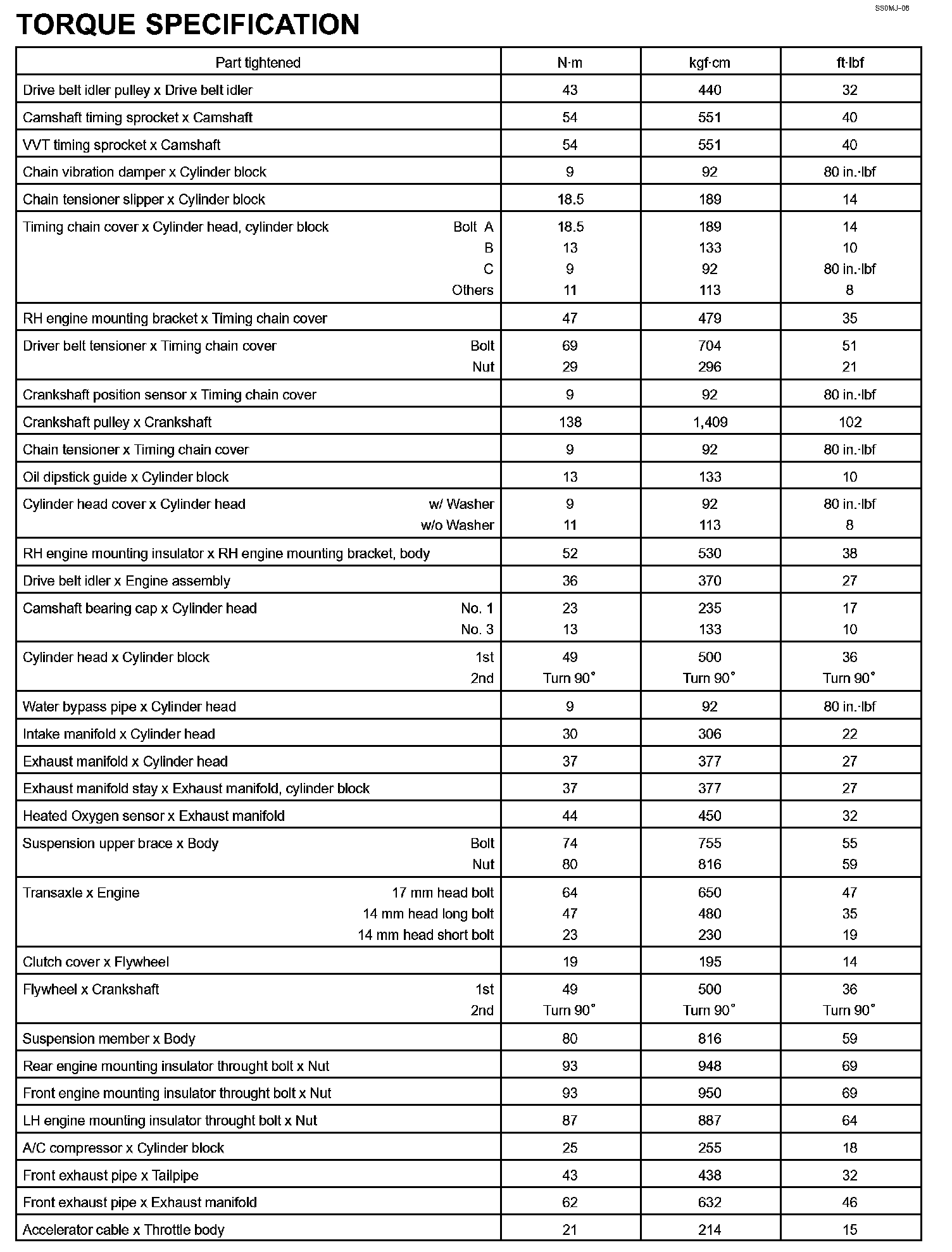 Engine Mechanical - Torque Specification Part 2: