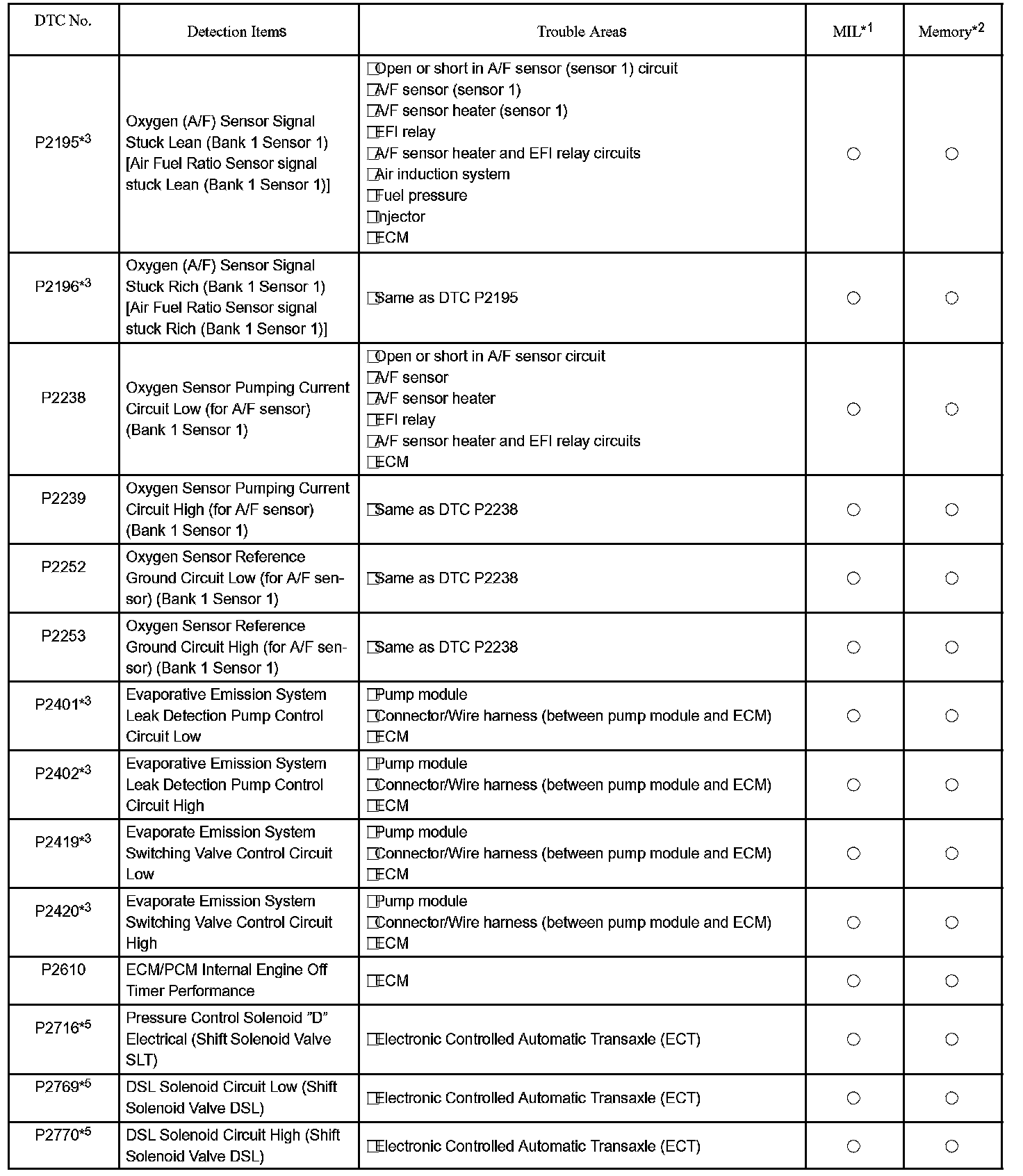 P0300 - P0351:
