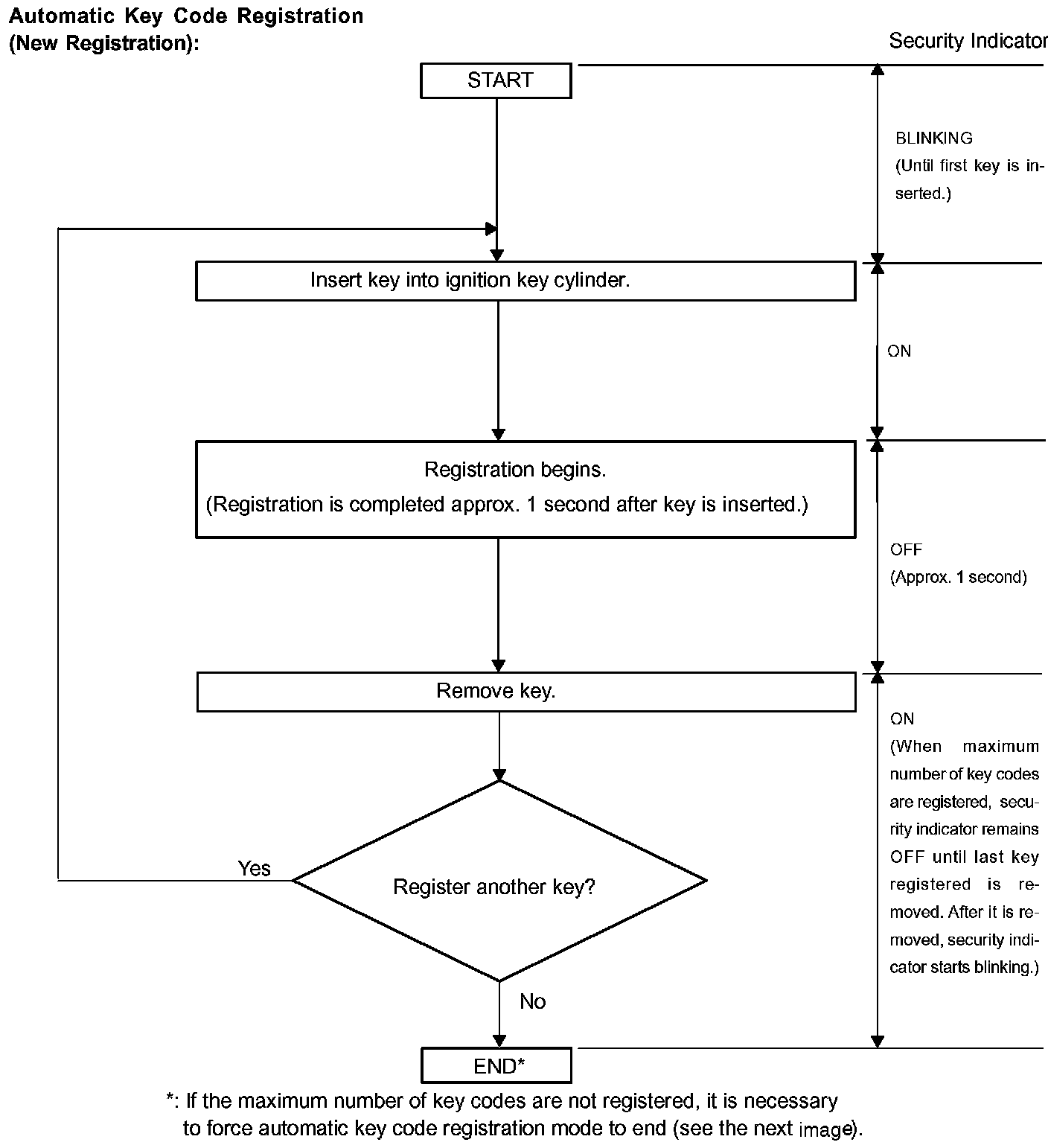 Automatic key code registration mode can be forced to end when at least 1 key code (immobilizer code) for the master key has been registered.