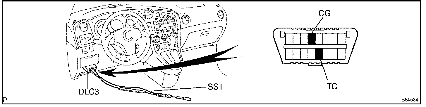 1. Using SST, connect terminals TC and CG of the DLC3.