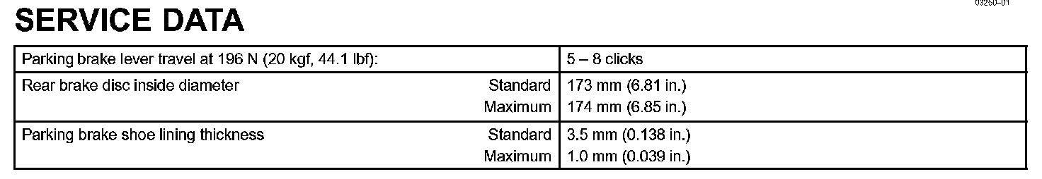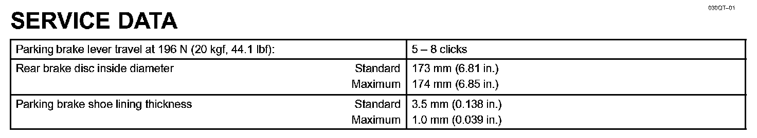 Parking Brake - Service Data: