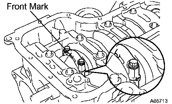 f) Check that the front mark of the connecting rod cap is facing in the correct direction.