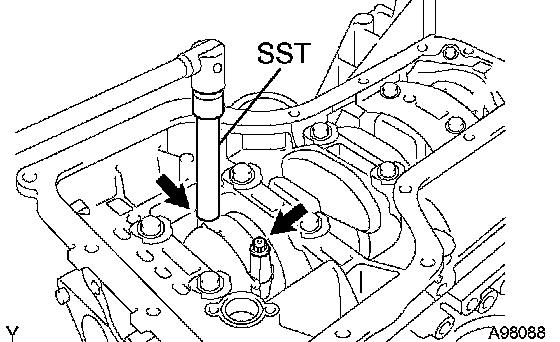 b) Using SST, remove the 2 bolts and connecting rod cap.