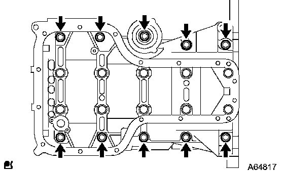 b) Uniformly loosen the 10 bearing cap bolts in several passes in the sequence shown in the illustration.