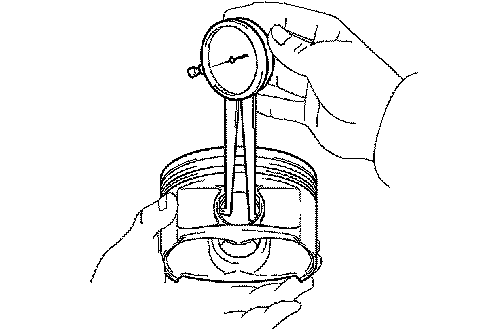 a) Using a caliper gauge, measure the piston pin bore diameter.