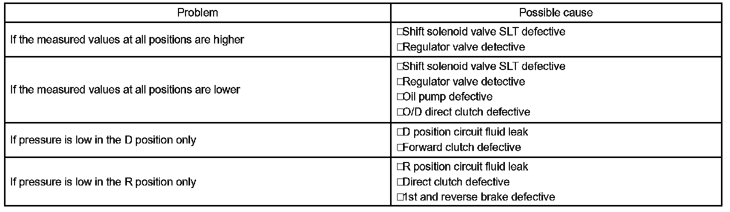 - Perform the test at the normal operating ATF (Automatic Transmission Fluid) temperature 50 to 80 °C (122 to 176 °F).
