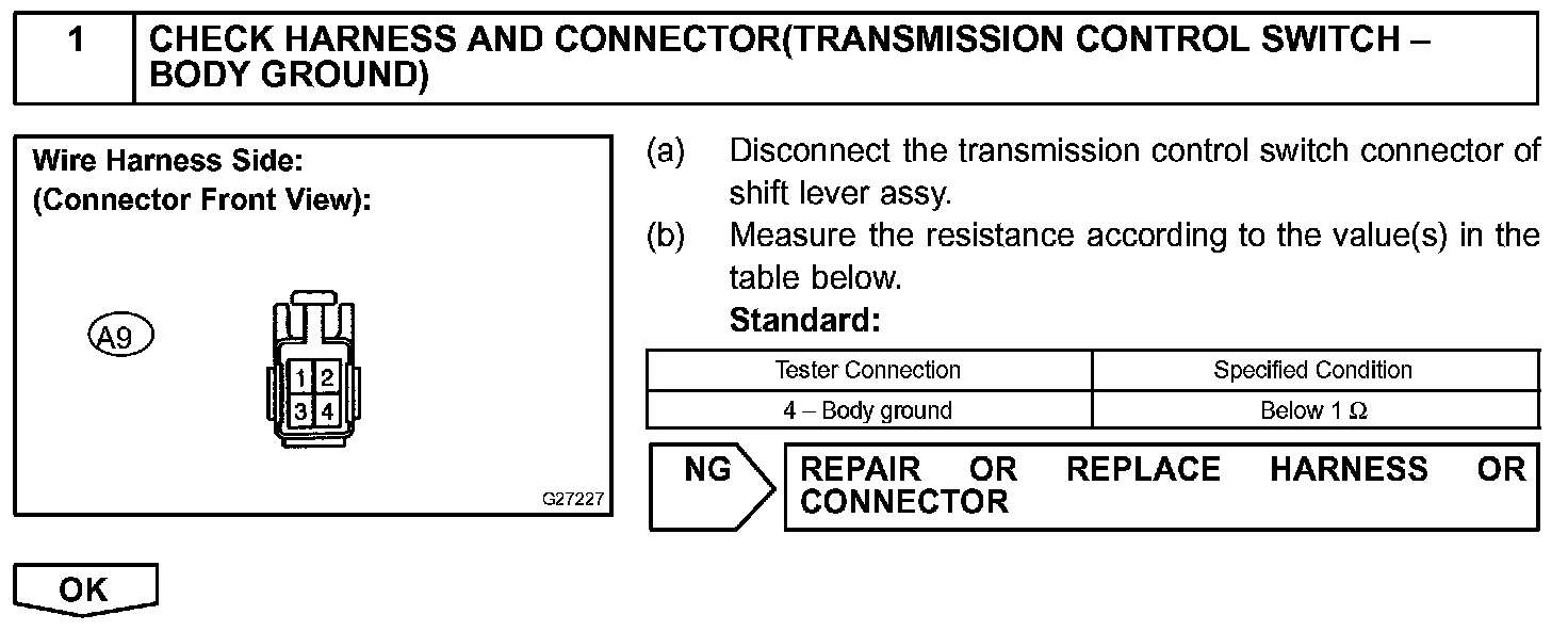 The O/D main switch (transmission control switch) is a momentary type switch. When pressing the O/D main switch, the O/D OFF indicator light lights up and the ECM prohibits shifting into O/D, and when pressing it` once again, the O/D OFF indicator light goes off and the ECM allows shifting into O/D. Turning the IG switch OFF will reset the O/D OFF indicator light.
