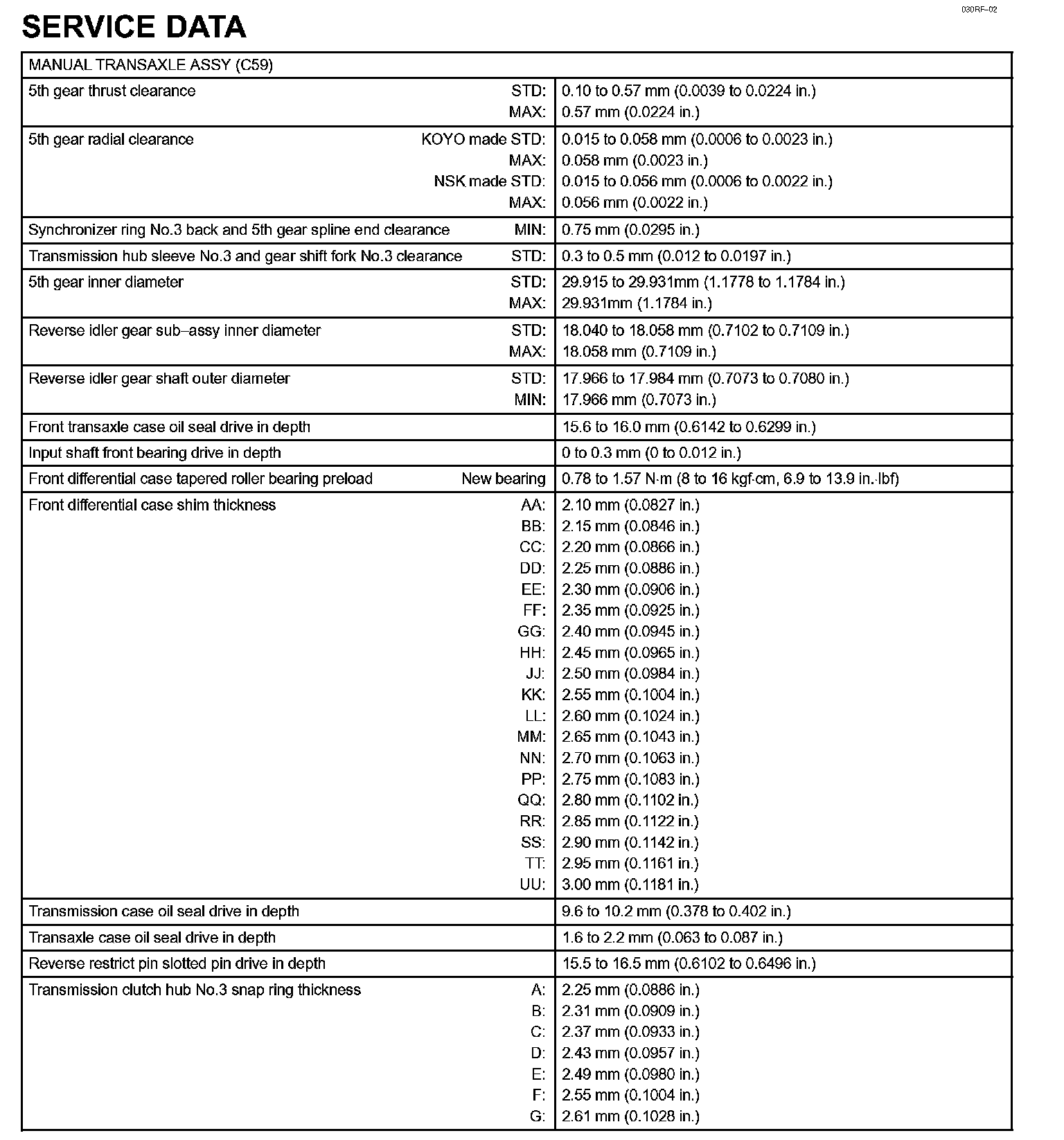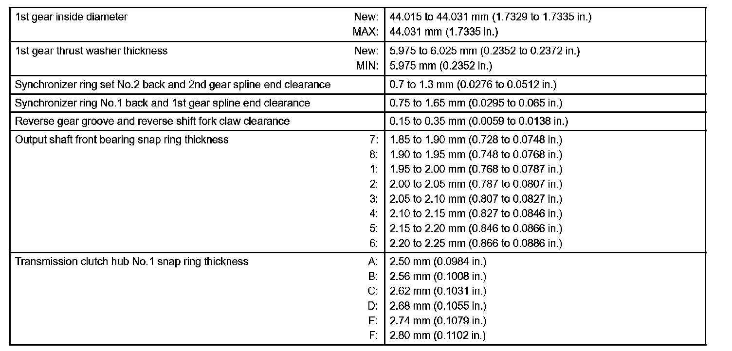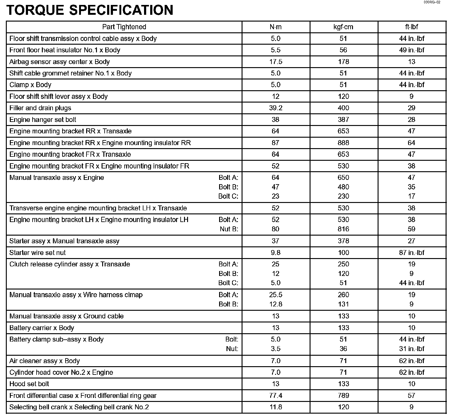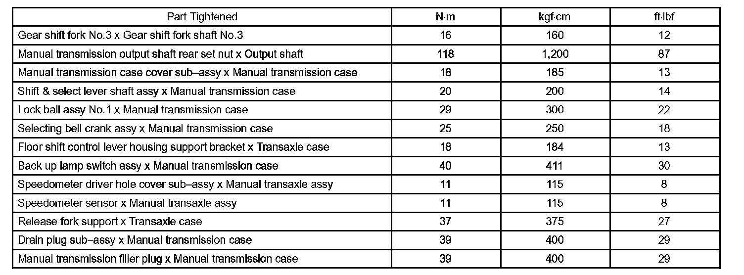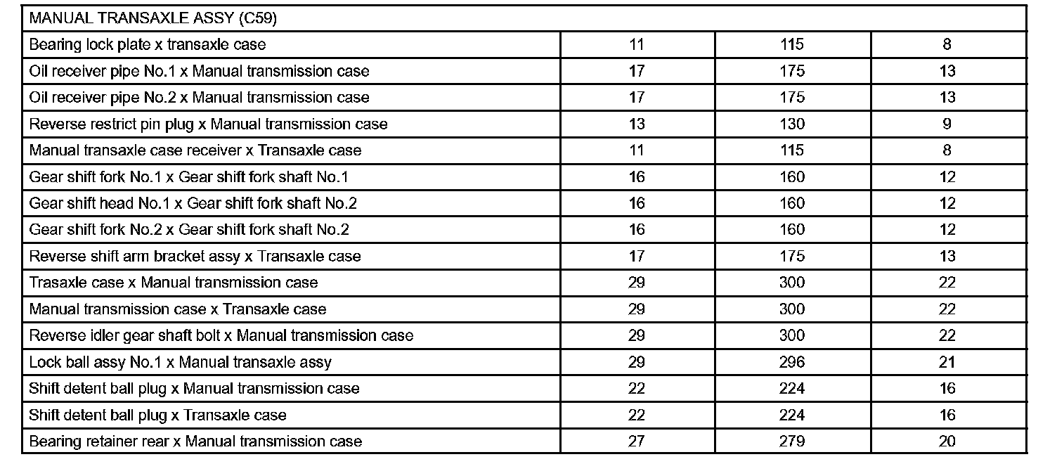 Manual Transmission/Transaxle - Torque Specification Part 2: