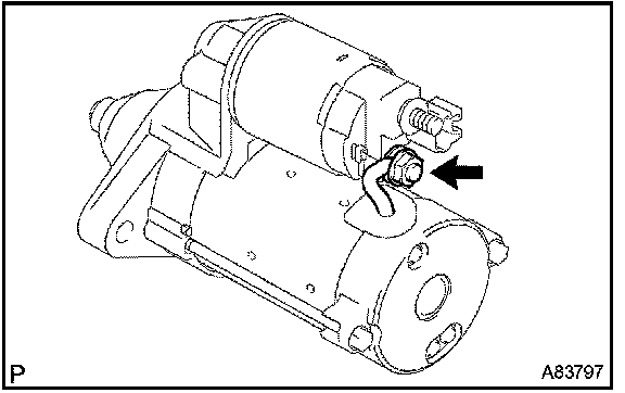 1. Disconnect the negative (-) lead from the starter body. Check that the clutch pinion gear returns.