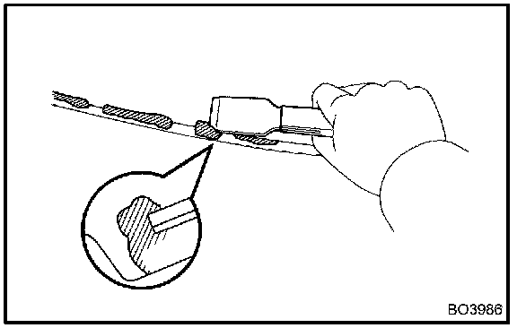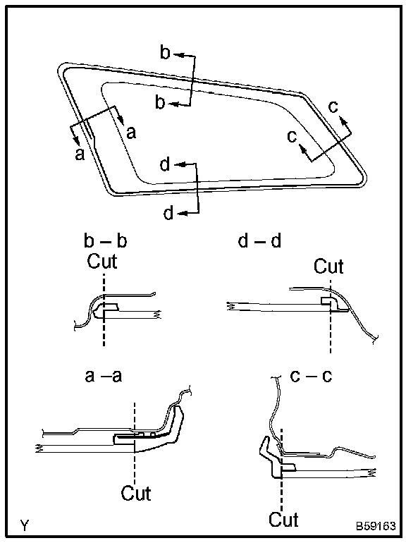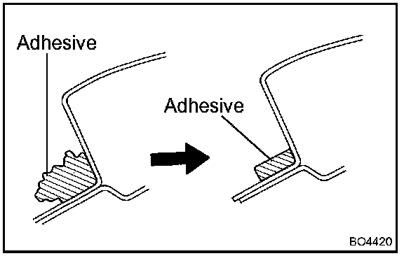 NOTE: Leave as much adhesive on the vehicle body as possible when removing the glass.