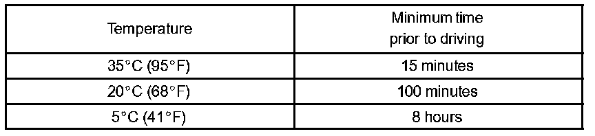 NOTE: Do not drive the vehicle for the amount of time written in the table.