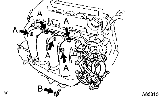 b) Install the bolt B and tighten the bolt A to specified torque.