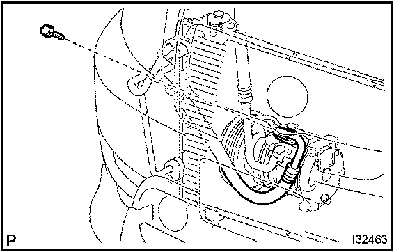 d. Install the discharge hose sub-assembly to the compressor and magnetic clutch with the bolt.