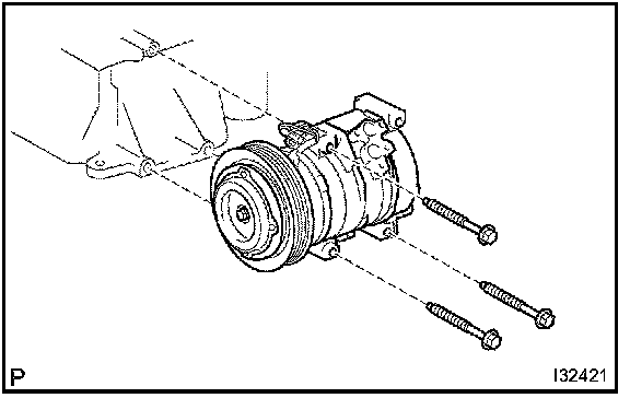 b. Remove the 3 bolts and compressor and magnetic clutch.