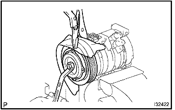 d. Using a snap ring expander, remove the snap ring and magnet clutch rotor.