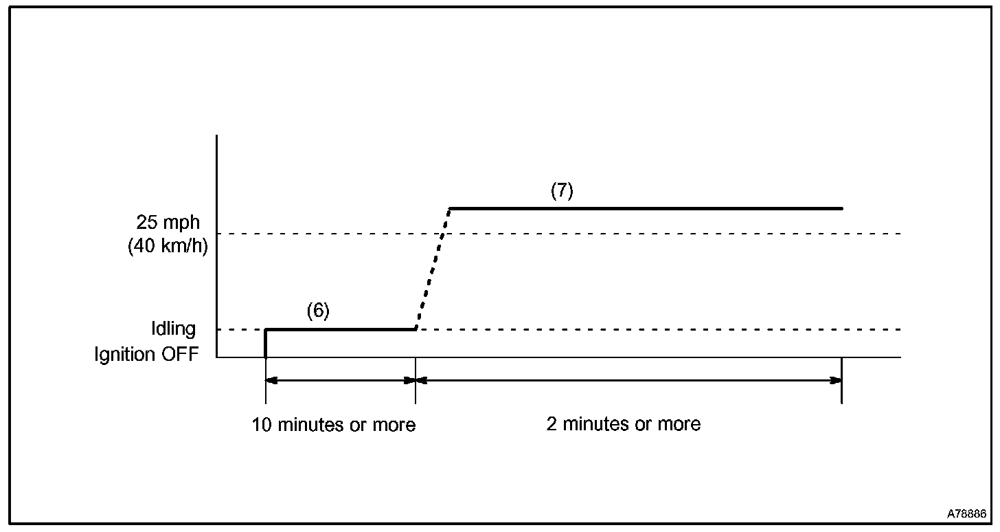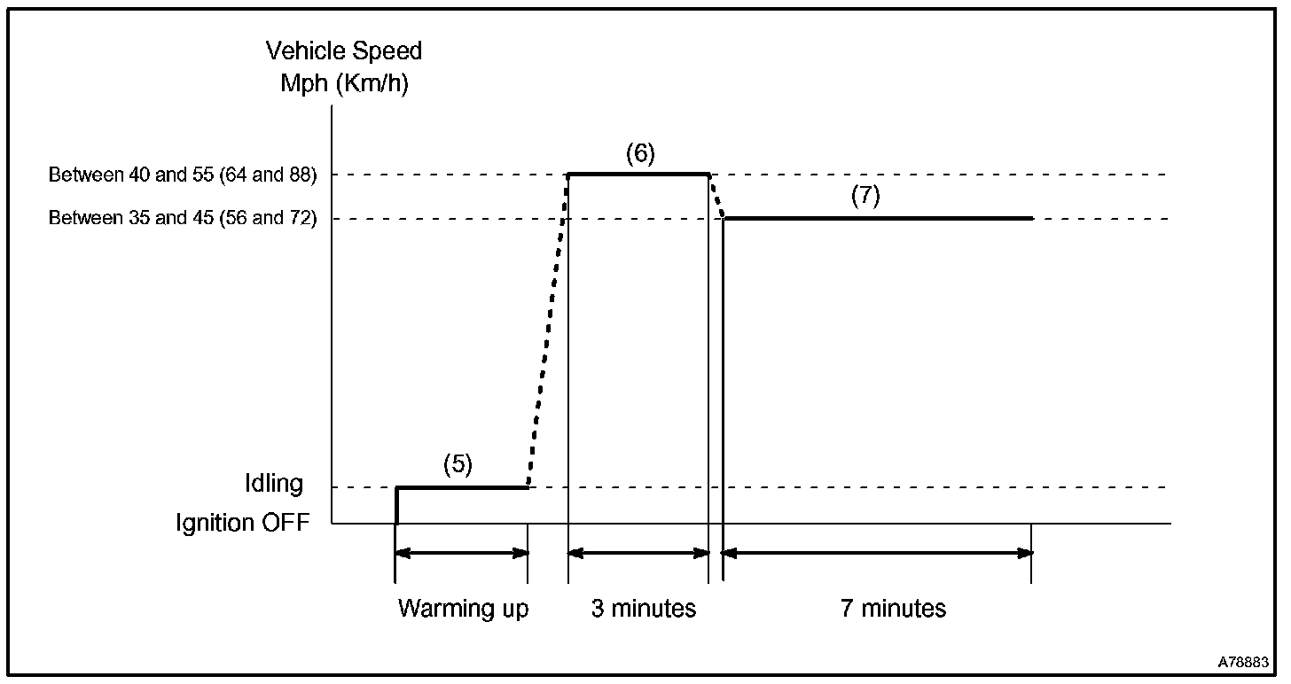7. Drive the vehicle at between 35 mph and 45 mph (56 km/h and 72 km/h) for approximately 7 minutes.