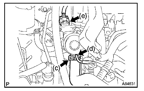 b. Remove the 2 bolts, then remove the pressure sensor (turbo pressure sensor).