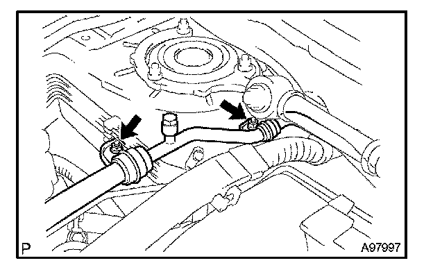 b. Remove the 2 nuts, then remove the cooler refrigerant suction hose No. 1.