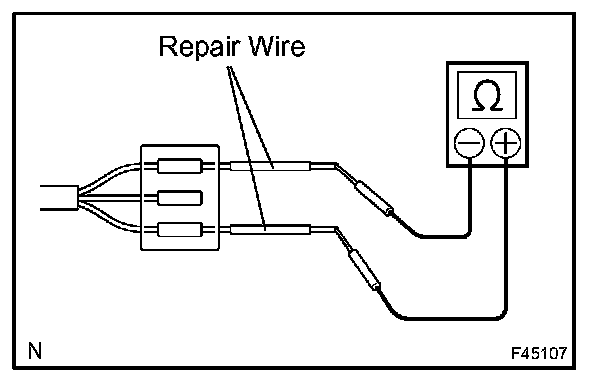 b. If it is impossible to check resistance from the back of the connector, use a repair wire to check it.
