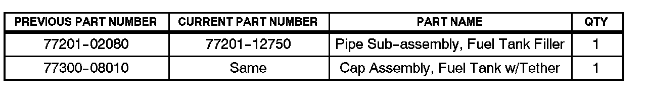 2. Replace the Fuel Tank Filler Pipe Sub-assembly with the updated part.