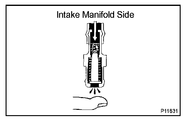 3. Blow air into the intake manifold side, then check that air does not pass through freely.