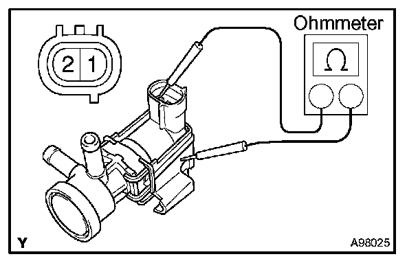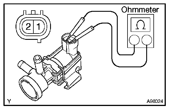 1. Using an ohmmeter, measure the resistance between the terminals.