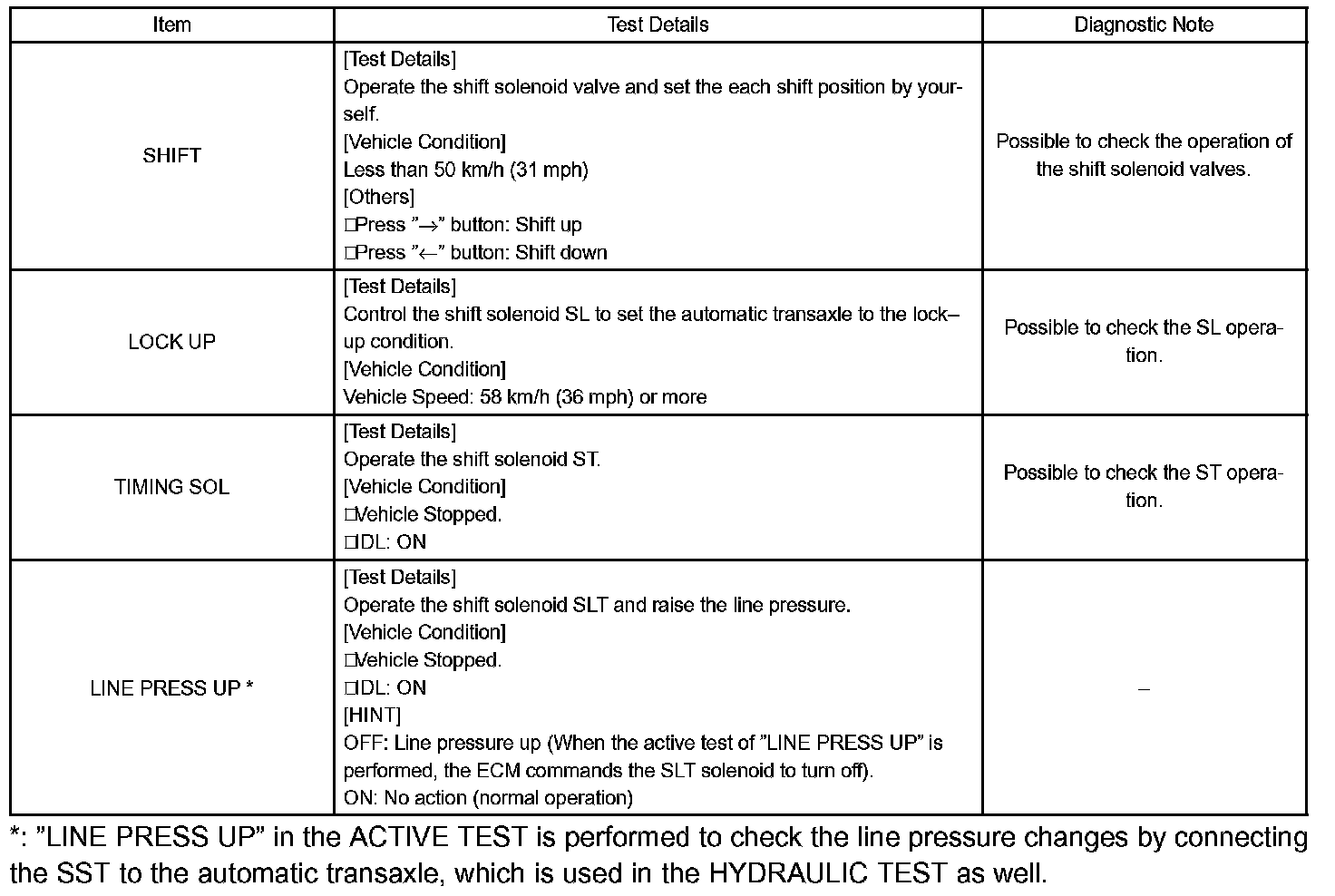 HINT: The pressure values in ACTIVE TEST and HYDRAULIC TEST are different from each other.