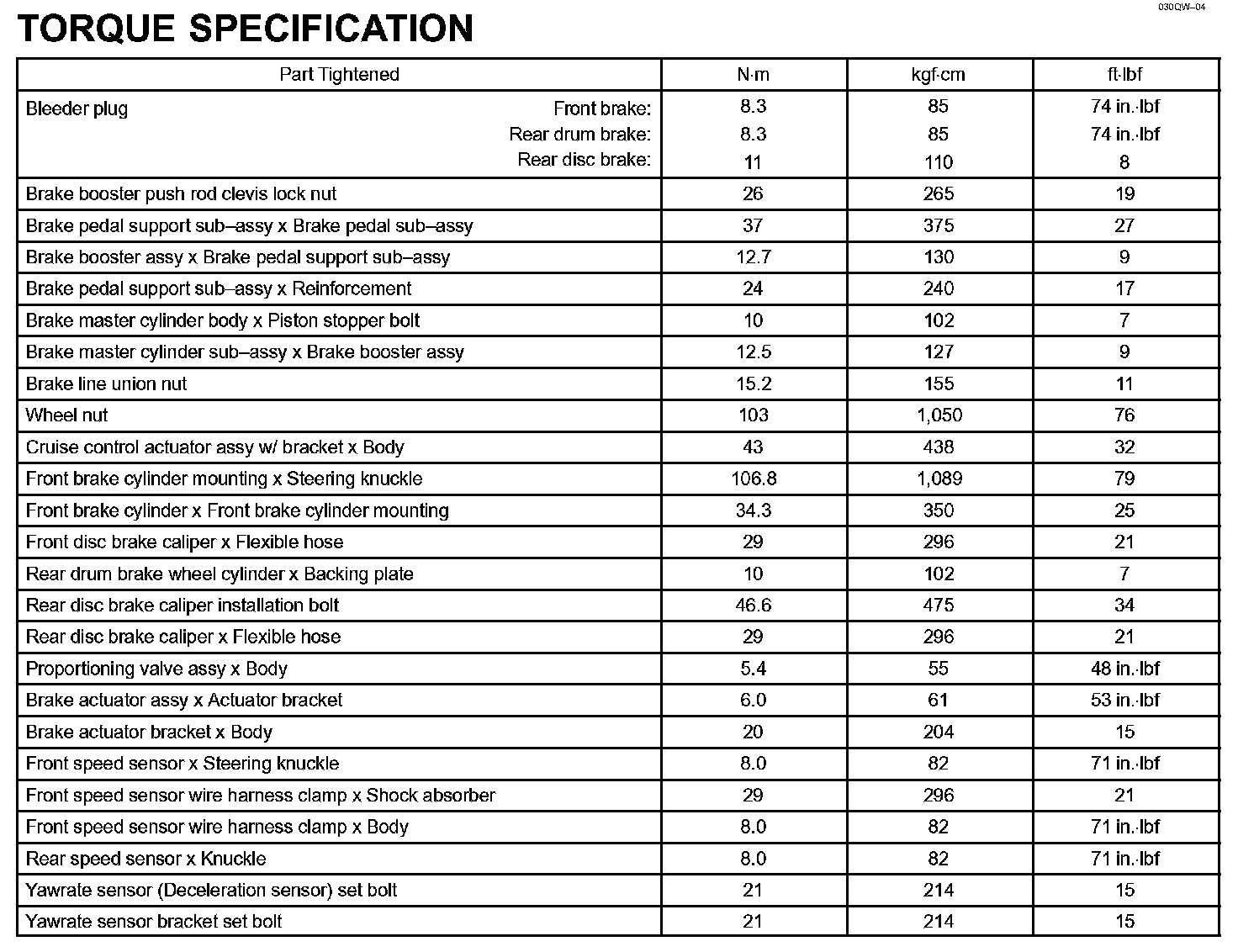 Brake - Torque Specification: