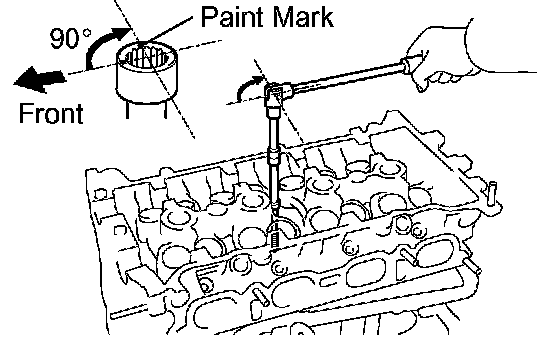 Retighten the cylinder head bolts 90° in the same sequence as step (b).