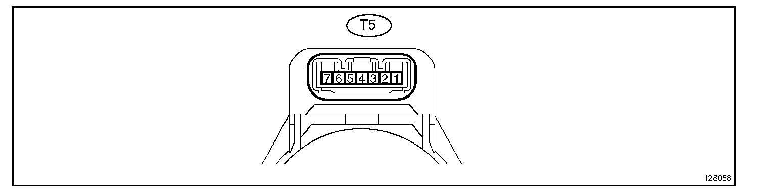 b. Reconnect the T5 amplifier connector, and measure the voltage of each terminal of the connector.