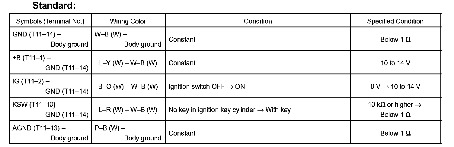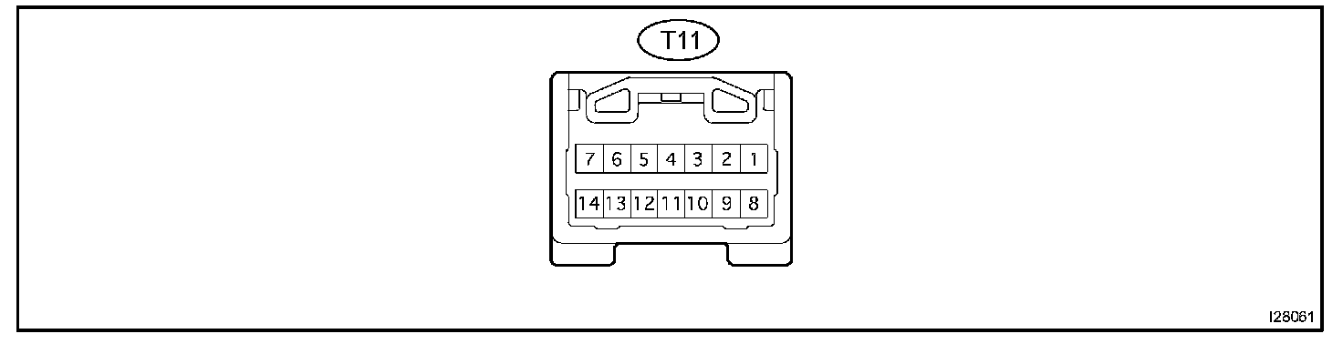 a. Disconnect the T11 ECU connector, and measure the voltage or resistance between each terminal of the wire harness side connector.