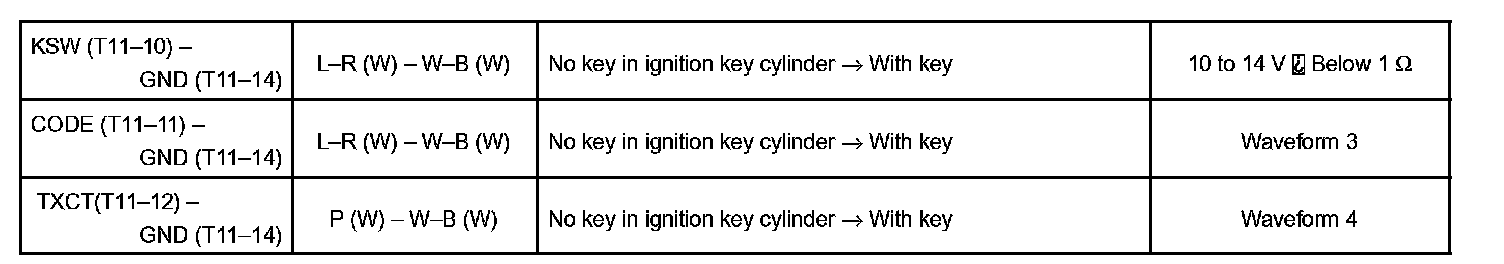 b. Reconnect the T11 ECU connector, and measure the voltage between each terminal of the connector.