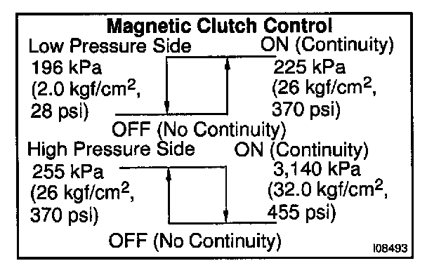4. Magnetic clutch control: INSPECT PRESSURE SWITCH OPERATION: