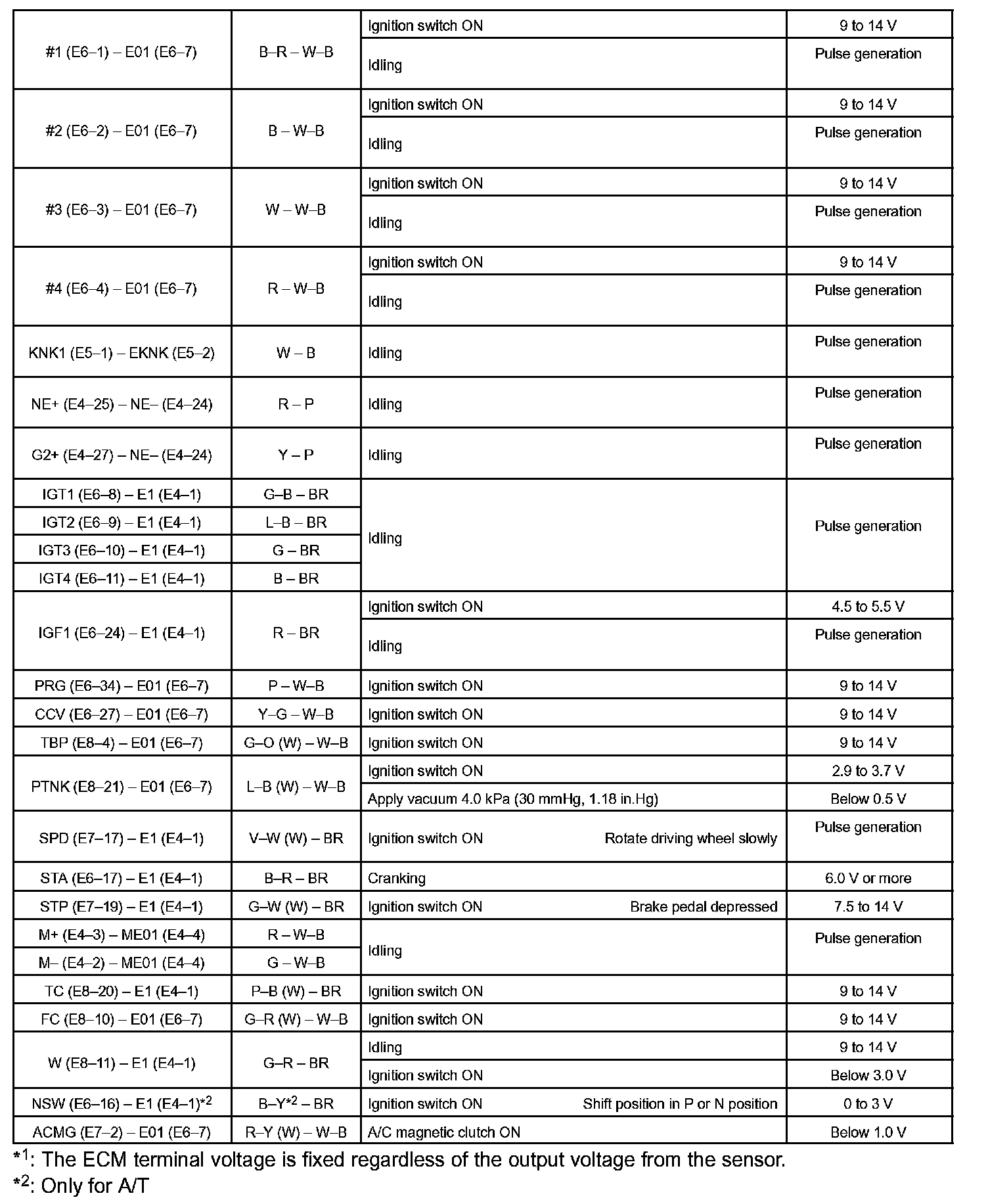 Pinout Values and Diagnostic Parameters