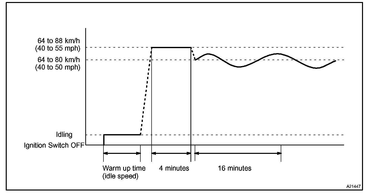 If IAT is less than 10 °C (50 °F) when the engine was started, drive the vehicle at 64 to 88 km/h (40 to 55 mph) for an additional 4 minutes.