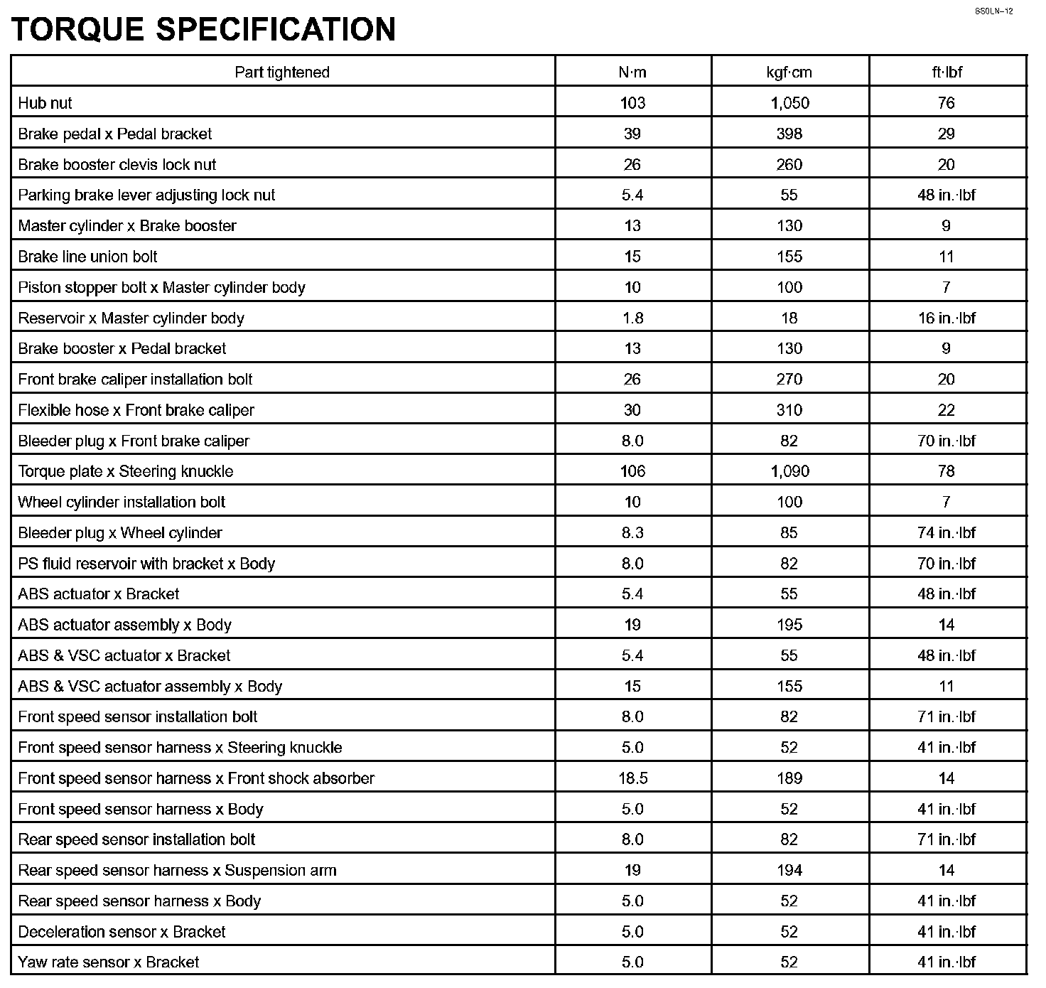Brake - Torque Specification:
