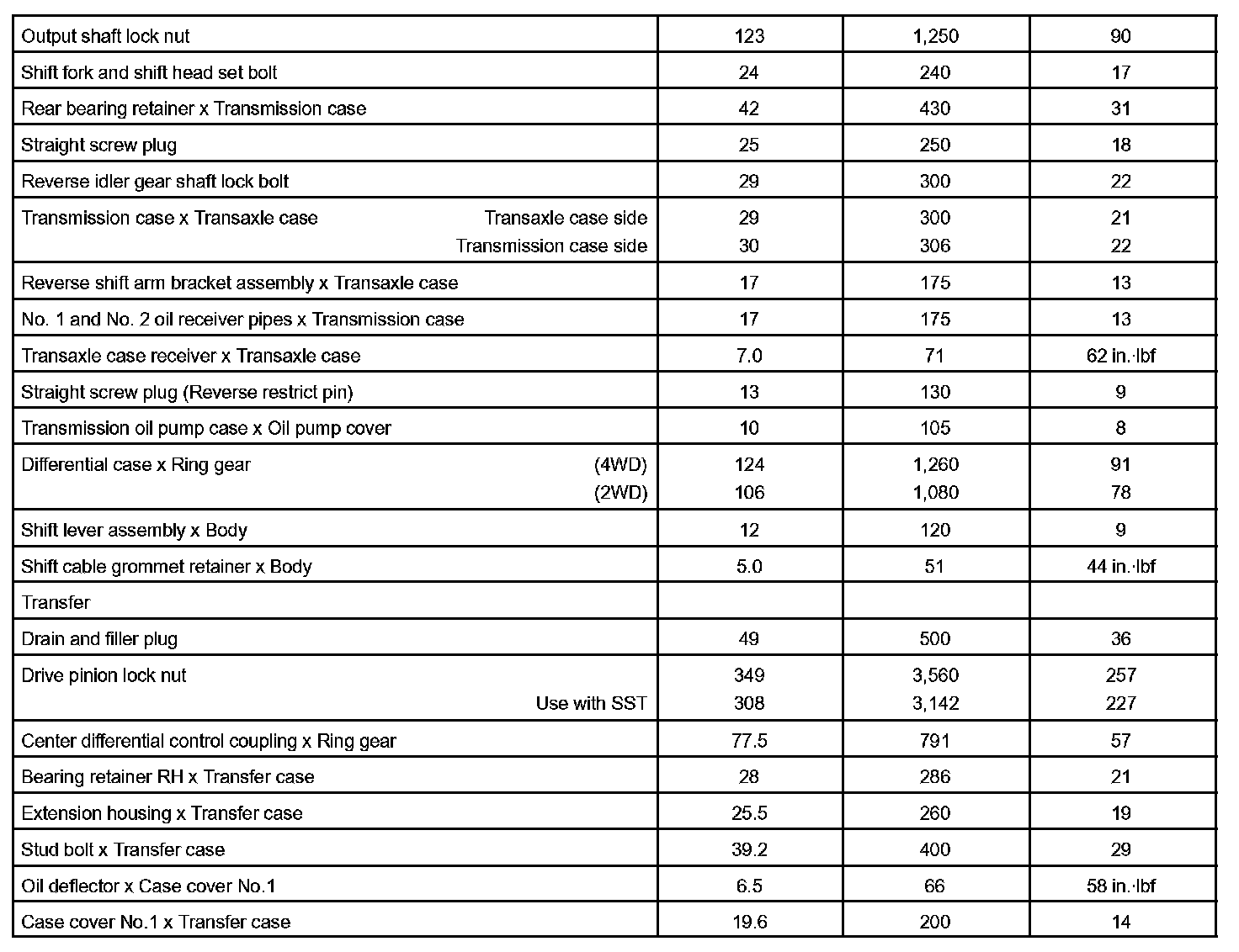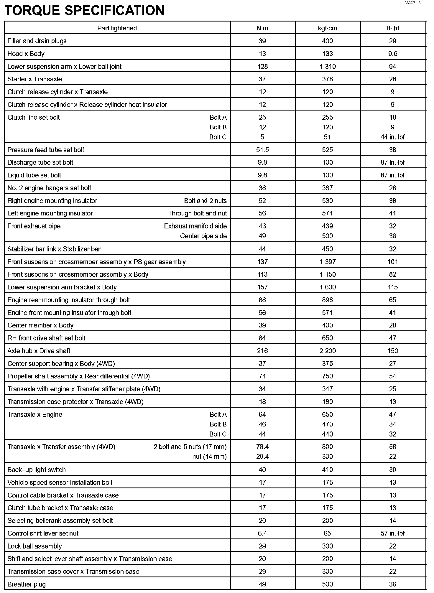 Manual Transaxle - Torque Specification Part 1: