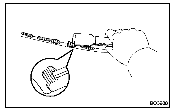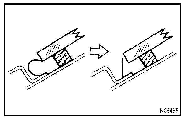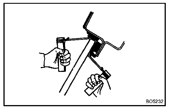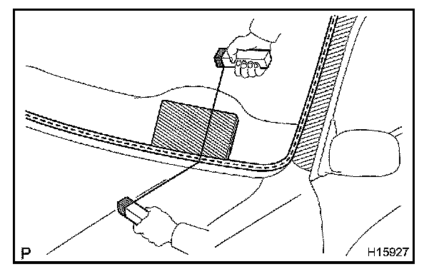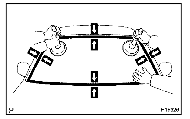 NOTE: When separating the glass, take care not to damage the paint and interior and exterior ornaments. To prevent scratching the safety pad when removing the windshield, place a plastic sheet between the piano wire and safety pad.