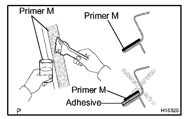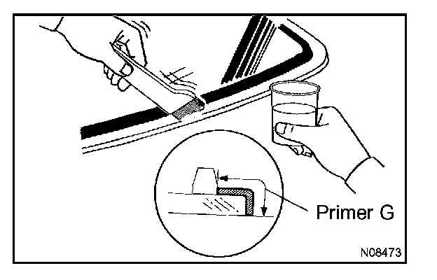 a. Using a brush or sponge, coat the edge of the glass and the contact surface with Primer G.