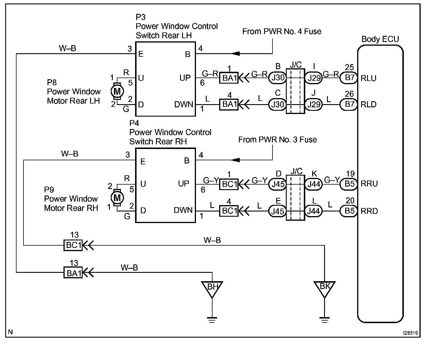 Rear Power Window Switch Circuit