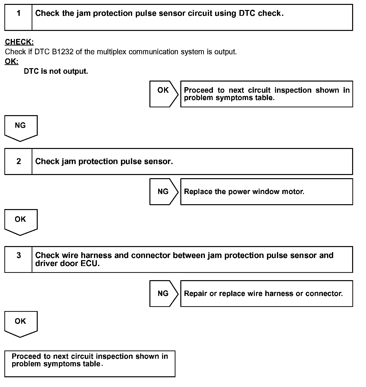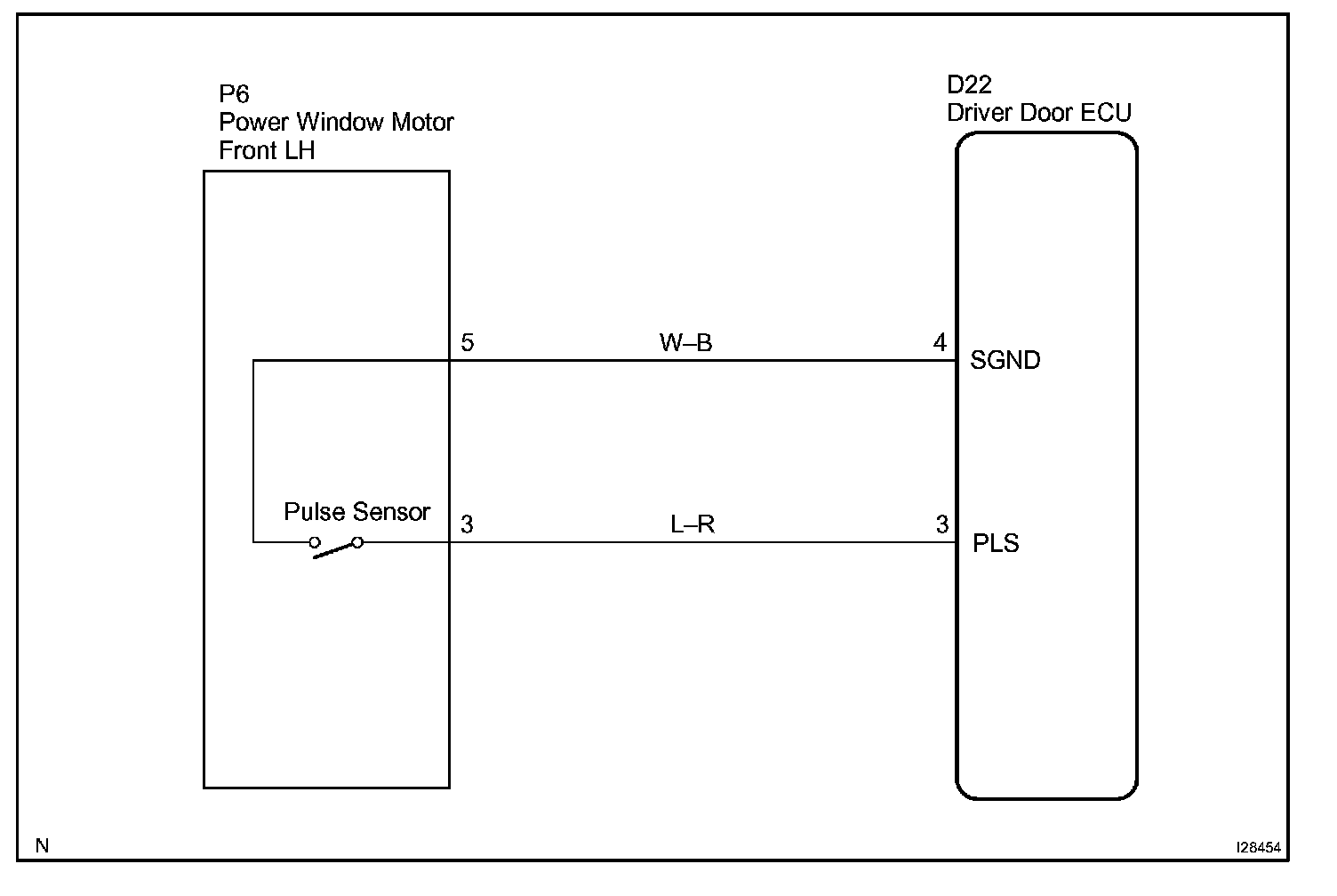 The jam protection pulse sensor, built in the power window motor, outputs a ON/OFF pulse when the motor rotates.