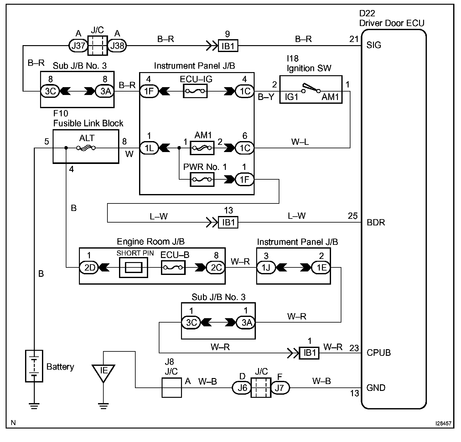 This circuit provides power to operate the driver door ECU.