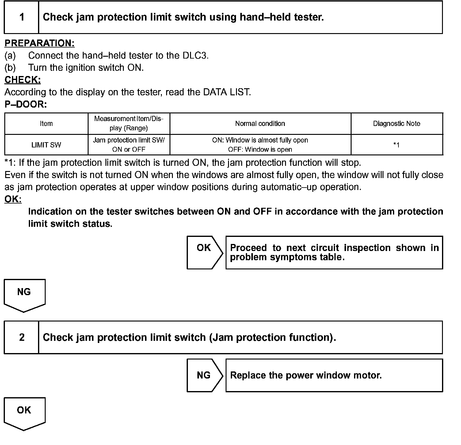 The jam protection limit switch, built in the power window motor, turns off before top dead center. The ECU reads this "OFF" signal and fully closes the window.