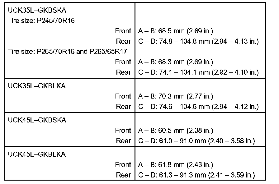 If the vehicle height is not as specified, try to adjust it by pushing down on or lifting the body.