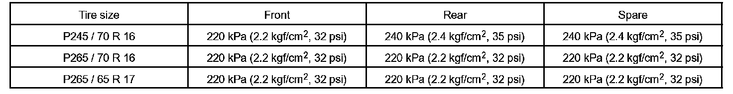 a. Set the tire air pressure for all wheels, including the spare, to the specified value.