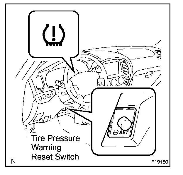 b. Keep the tire pressure warning reset switch pressed for 3 seconds or more with the ignition switch on.