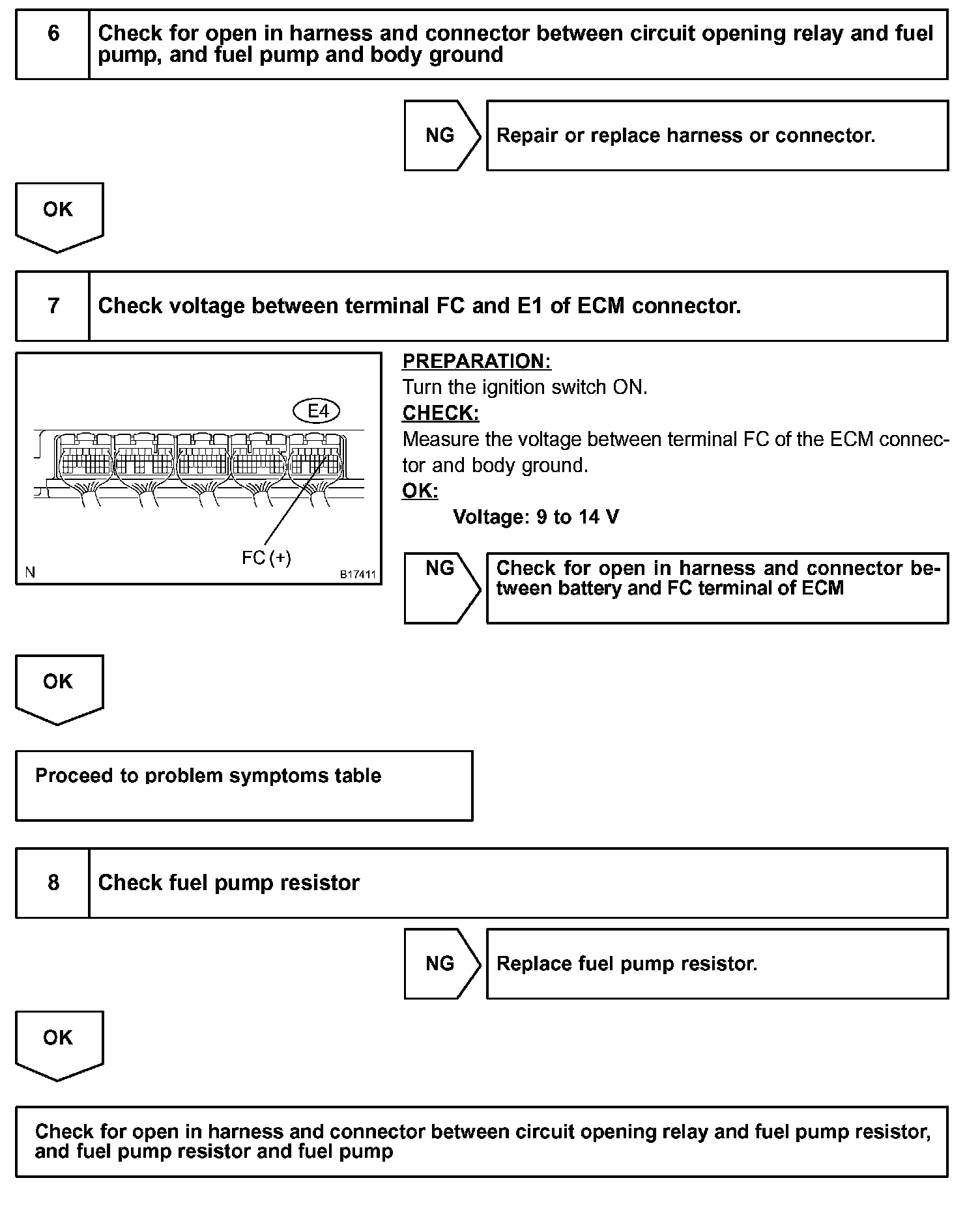 HINT: This diagnostic chart is based on premise that engine is started. If the engine is not started, proceed to problem symptoms table.