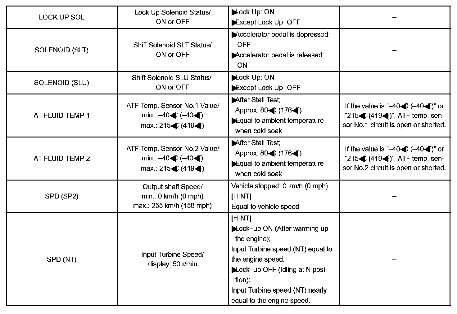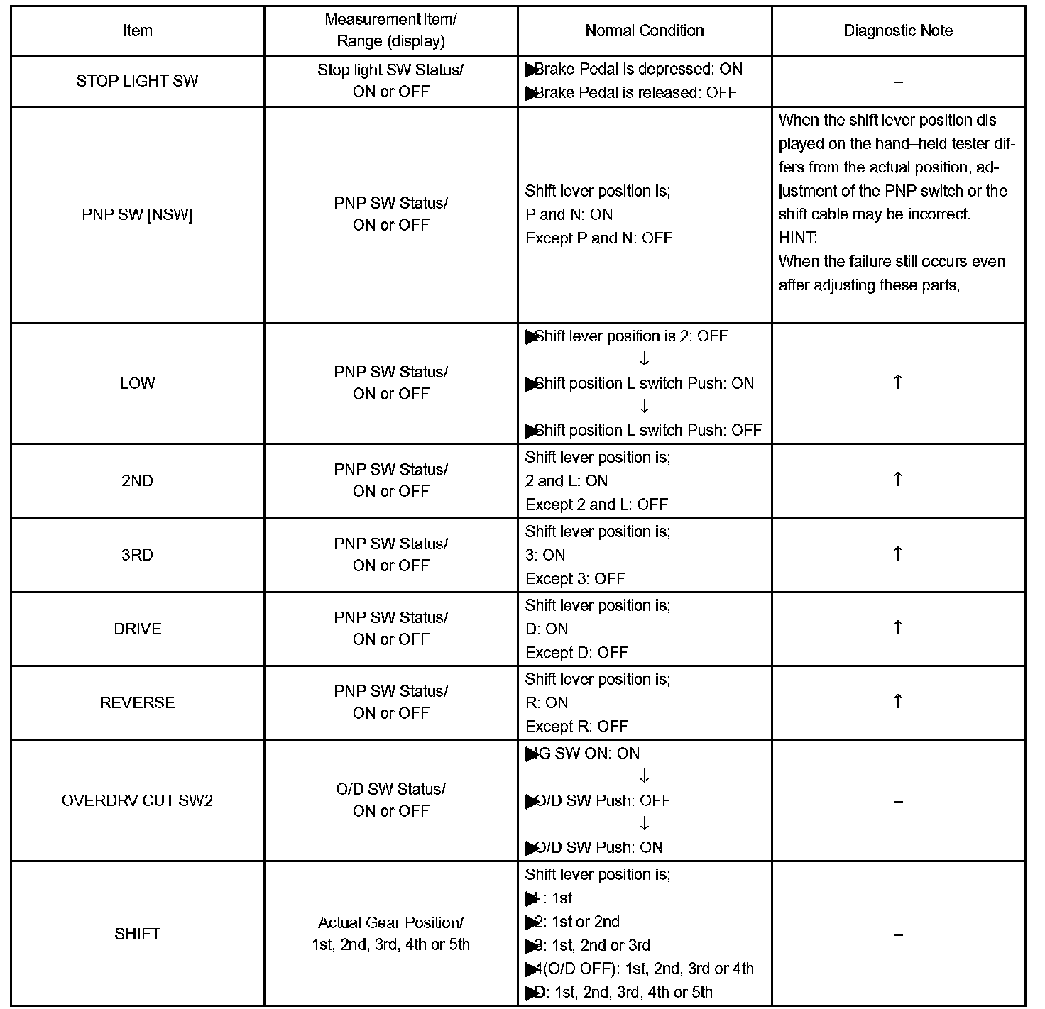 DATA LISTHINT: According to the DATA LIST displayed by the OBD II scan tool or hand-held tester, you can read the value of the switch, sensor, actuator and so on without parts removal. Reading the DATA LIST as the first step of troubleshooting is one method to shorten labor time.