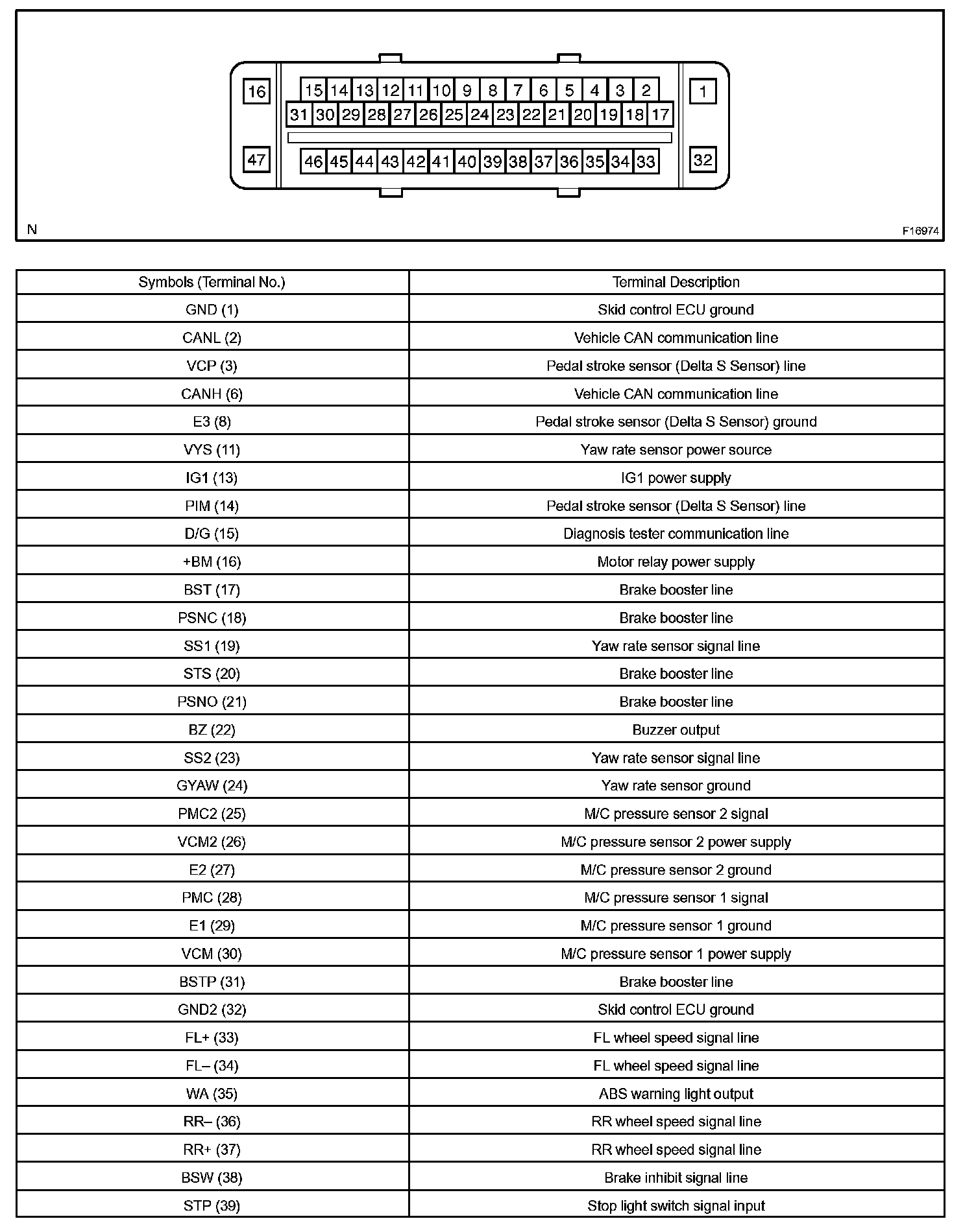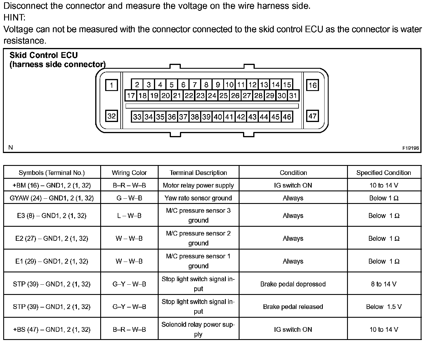 Terminals Of Control Module/Pinouts - Skid Control ECU Part 2: