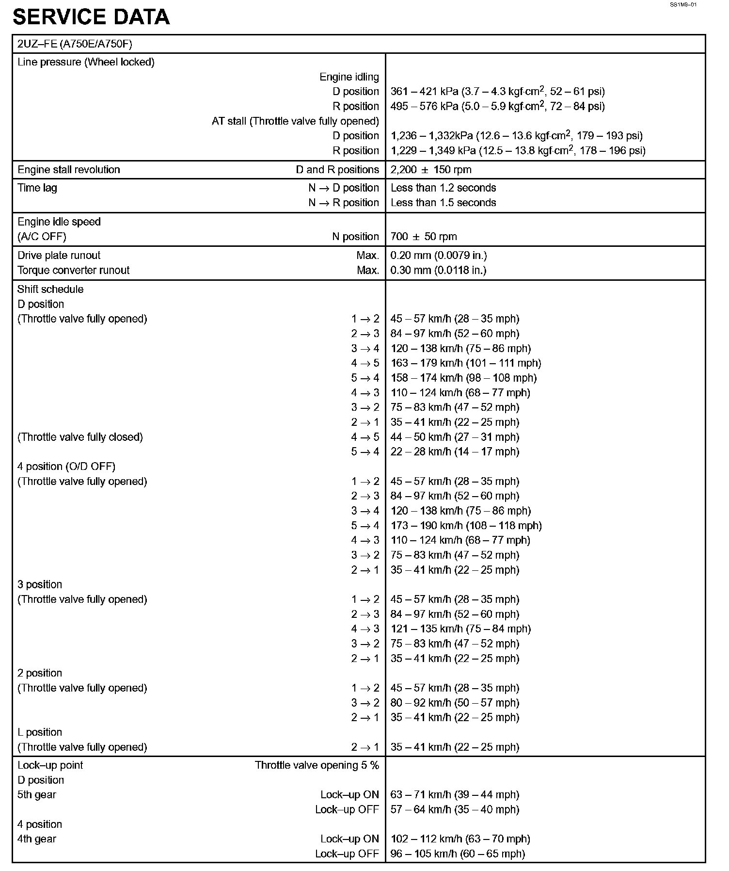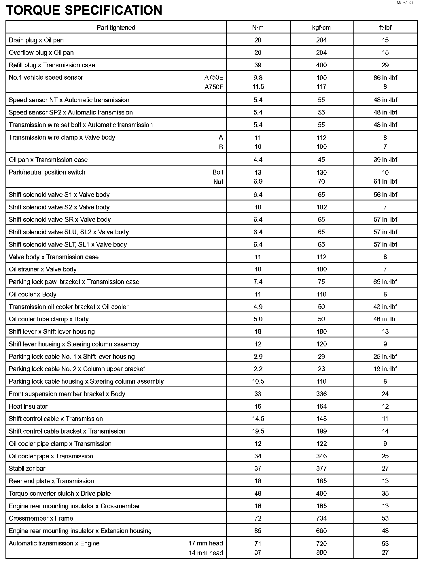 Automatic Transmission (A750E, A750F) - Torque Specification: